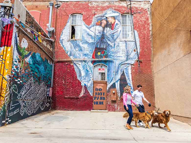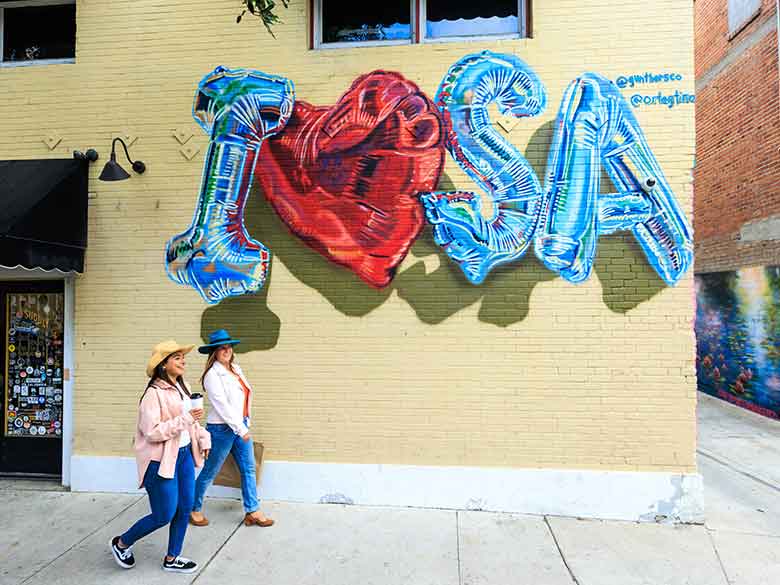 Pay attention as you explore, it’s not uncommon to find them in alleys, on the sides of buildings, doorways, electrical utility boxes, and even entire city blocks. Be sure to check out our Public Art Guide to help you navigate.