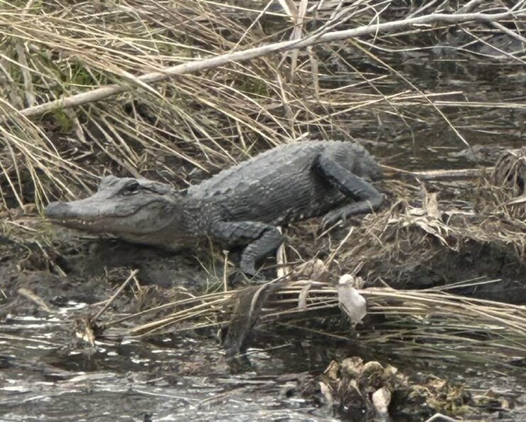 This alligator was sunning on the bank during our tour. ©Cindy Ladage