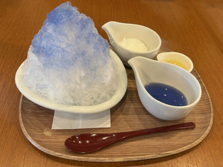 Kakigōri was a relief from the summer heat. Pictured in menus, it reminded me of snow cones I’d have to cool off during New York City’s sweltering summers. But kakigōri is a DIY exercise. Whether you get it at a restaurant, as I did, or on the street, you’re presented with a pile of finely shaved ice with a consistency of snow and a selection of fruit syrups to drizzle on the ice. I chose the blueberry syrup along with whipped cream. Consuming the sweet, soft ice, I imagined it was the closest I’d get to tasting a cloud.